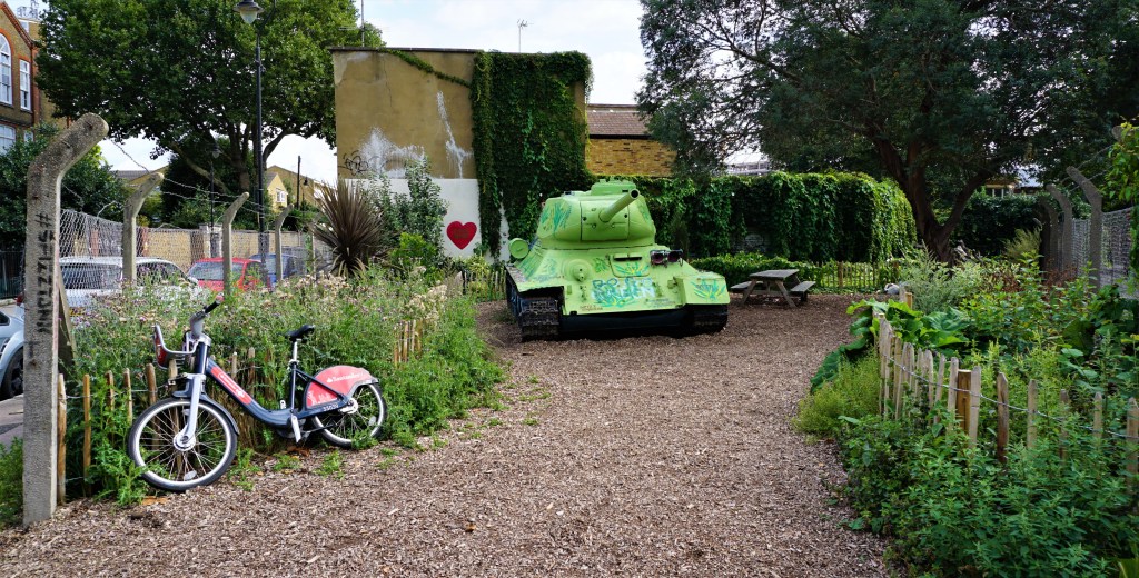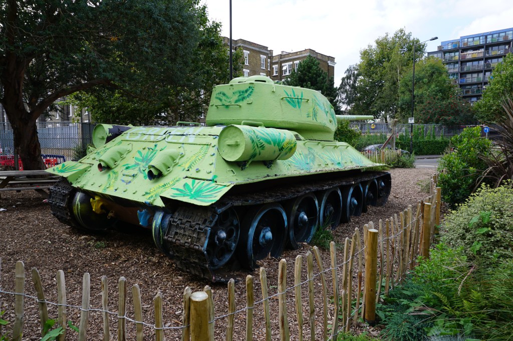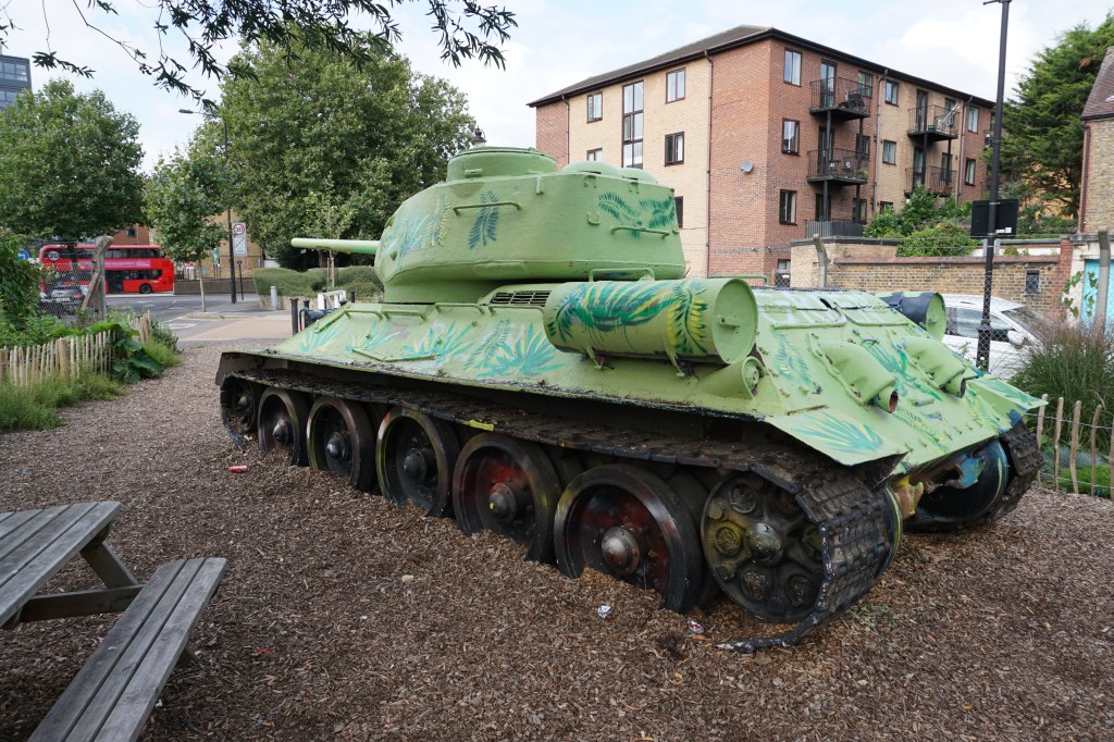 We were visiting London for the weekend to see our daughter Amelia in her first West End Performance so I decided to finally visit this Soviet built T34 tank at Mandela Way in Bermondsey. It was early Sunday morning my wife was asleep and I decided to get out early, hire a Boris Bike, and head out across the city to visit this tank.