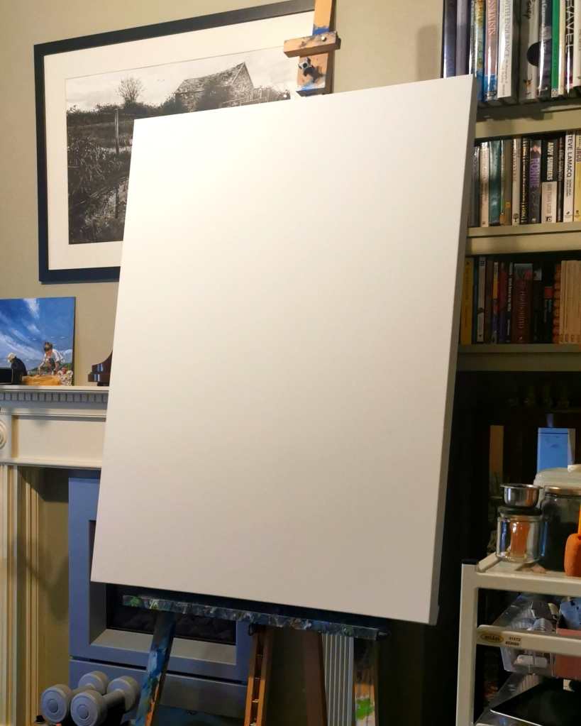 A move away from landscape painting and back to figure painting. A challenging composition in the making! 30 x 40″ deep edge canvas.