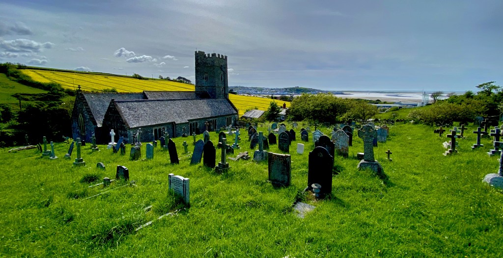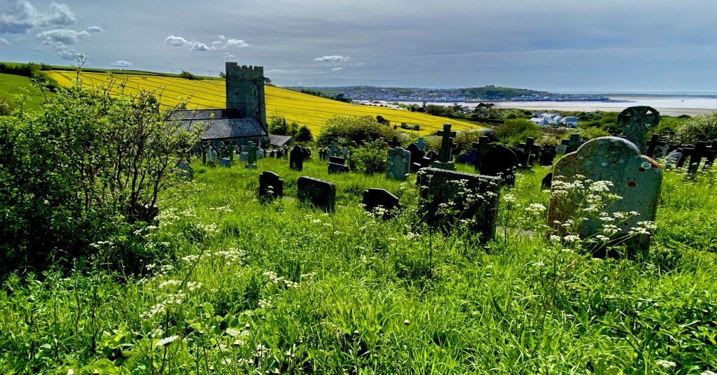 We made the most of a gap in the weather today with a walk in the sunshine around Instow in North Devon. The waterfront was closed off to traffic and a right royal street party was underway; my wife and I had the mandatory Hocking’s Ice Cream with clotted cream on the top. The humid afternoon soon began to lose it’s sunshine but not before I managed to take these pictures in the graveyard of Instow Church. I’m struck every year with the cadmium yellow rapeseed fields around the estuary and was very pleased to capture them this year.