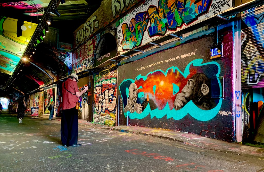 We had a weekend in London and early one morning I popped out of our hotel The Park Plaza in Westminster and visited Leake Street where graffiti artists are at work. These are a few pictures from this journey through spray can land!
