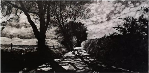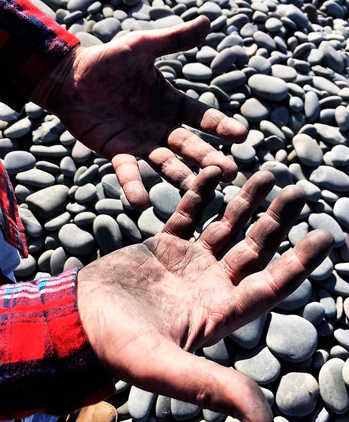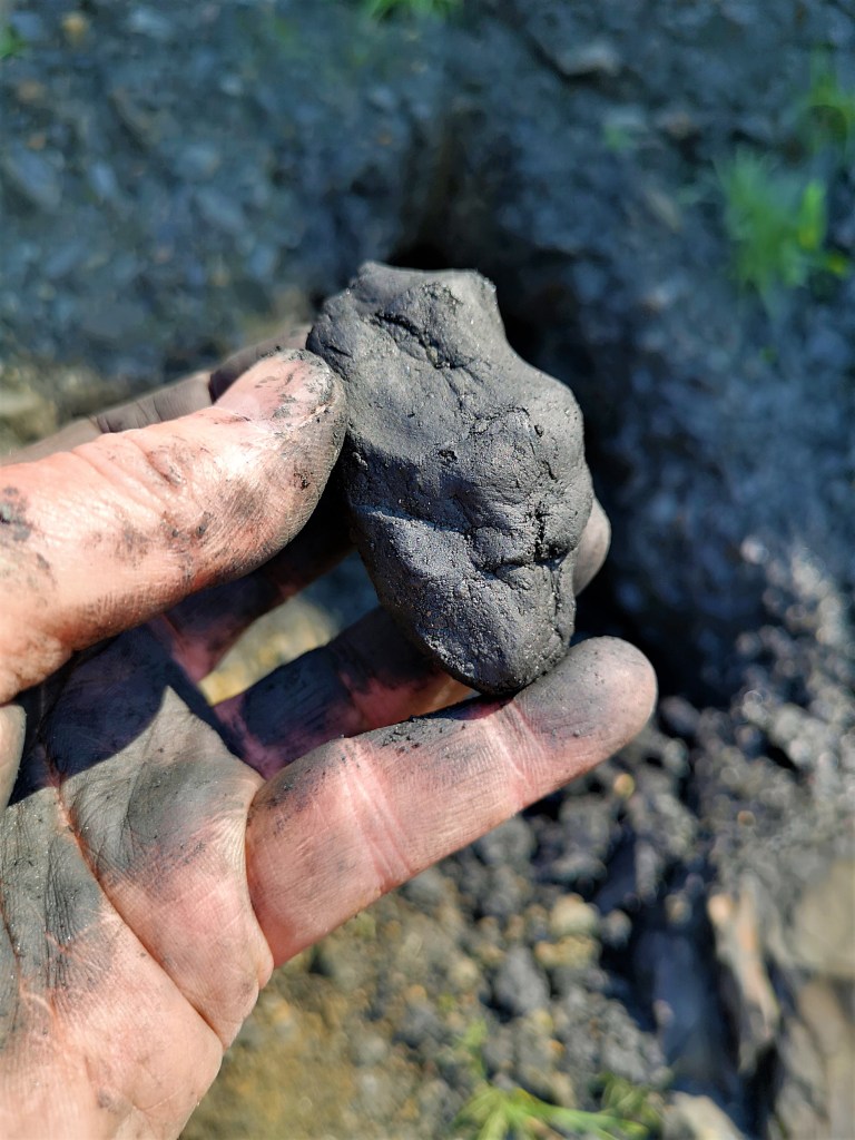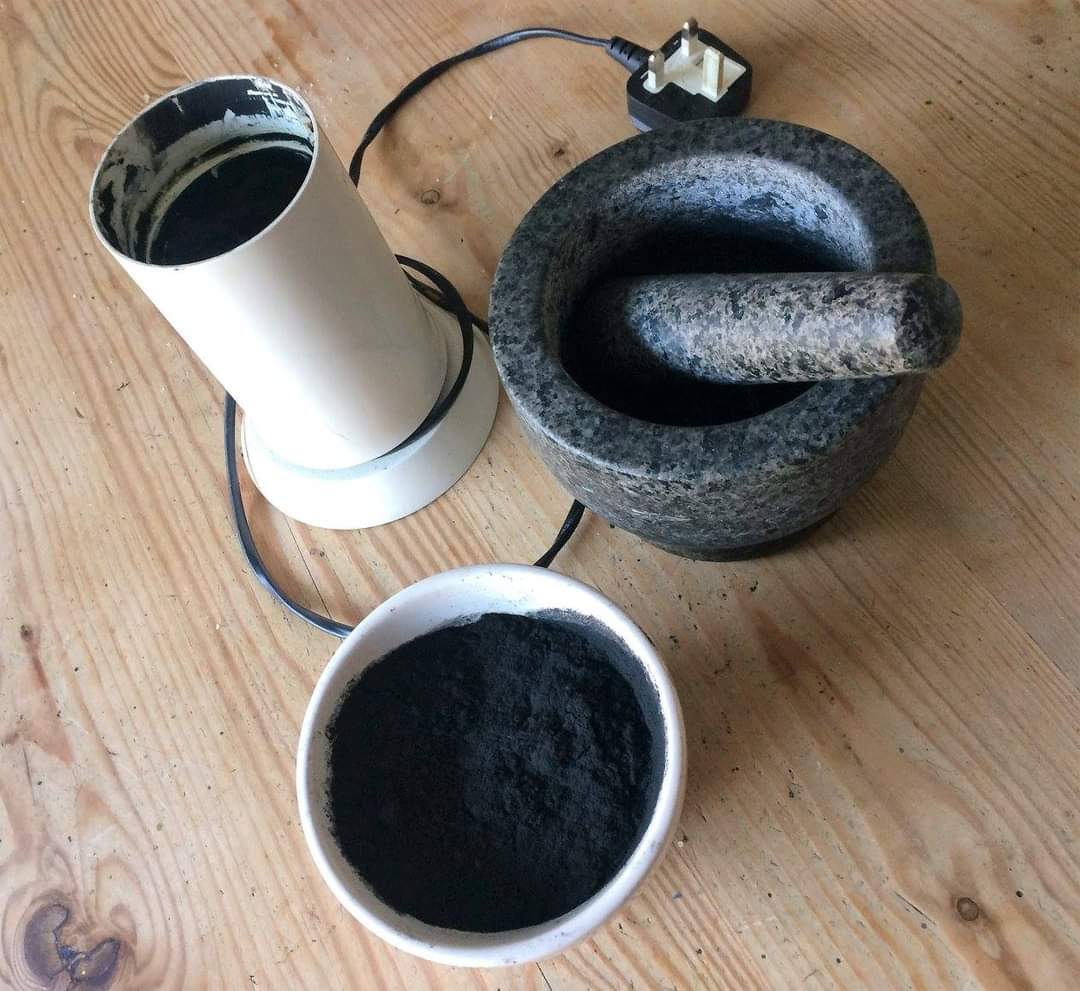 In search of the elusive Bideford Black Pigment otherwise known as Biddiblack. Running alongside seams of anthracite across North Devon is a black clay-like material that was mined for 200 years in Bideford for its uses as a strong black pigment. The unique ‘Mineral Black’, or ‘Biddiblack’ as it was known, was commercially produced for applications in the boat building industry, for colouring rubber products, for camouflage on tanks in WWII and was even bought by Max Factor for the production of mascara. The mines were closed in 1968 when the production of cheaper oil-based blacks and the depletion of the seam made the operation financially unviable, but many locals still remember the ‘Paint Mines’ and have tales to tell of using the paint or going into the now defunct mine shafts. Today it’s revered by artists who love it’s inky black non reflective properties. It first has to be dried, ground and then mixed with a medium such as PVA or Gum Arabic. Looking forward to making my own now and seeing what images I can produce.