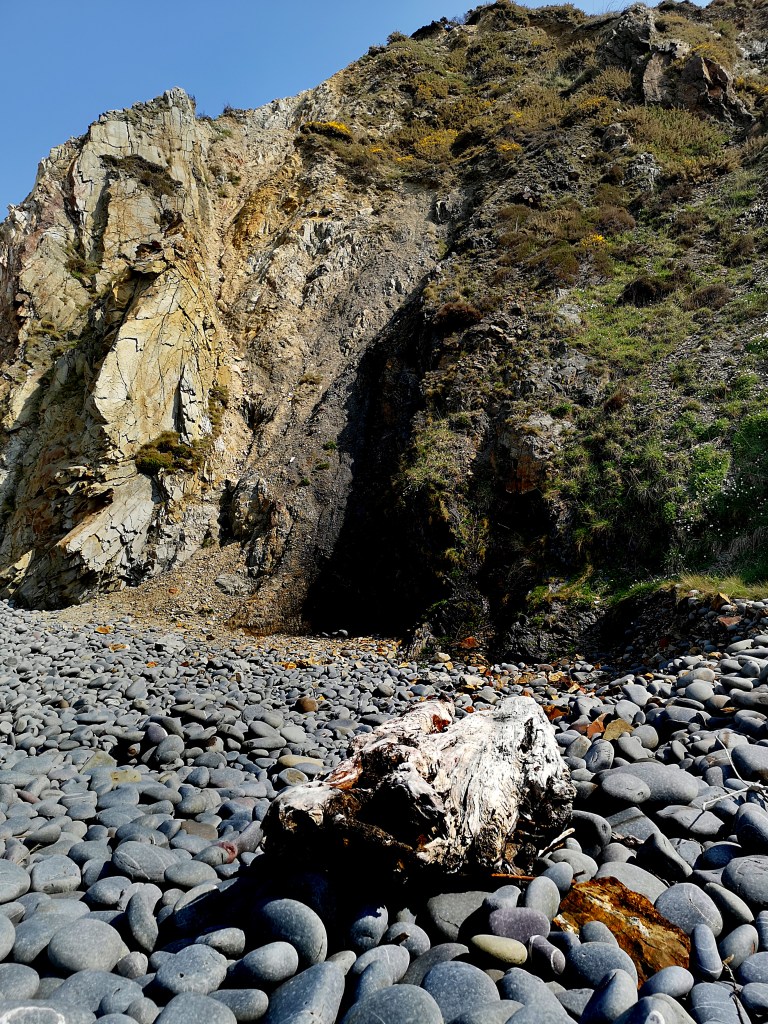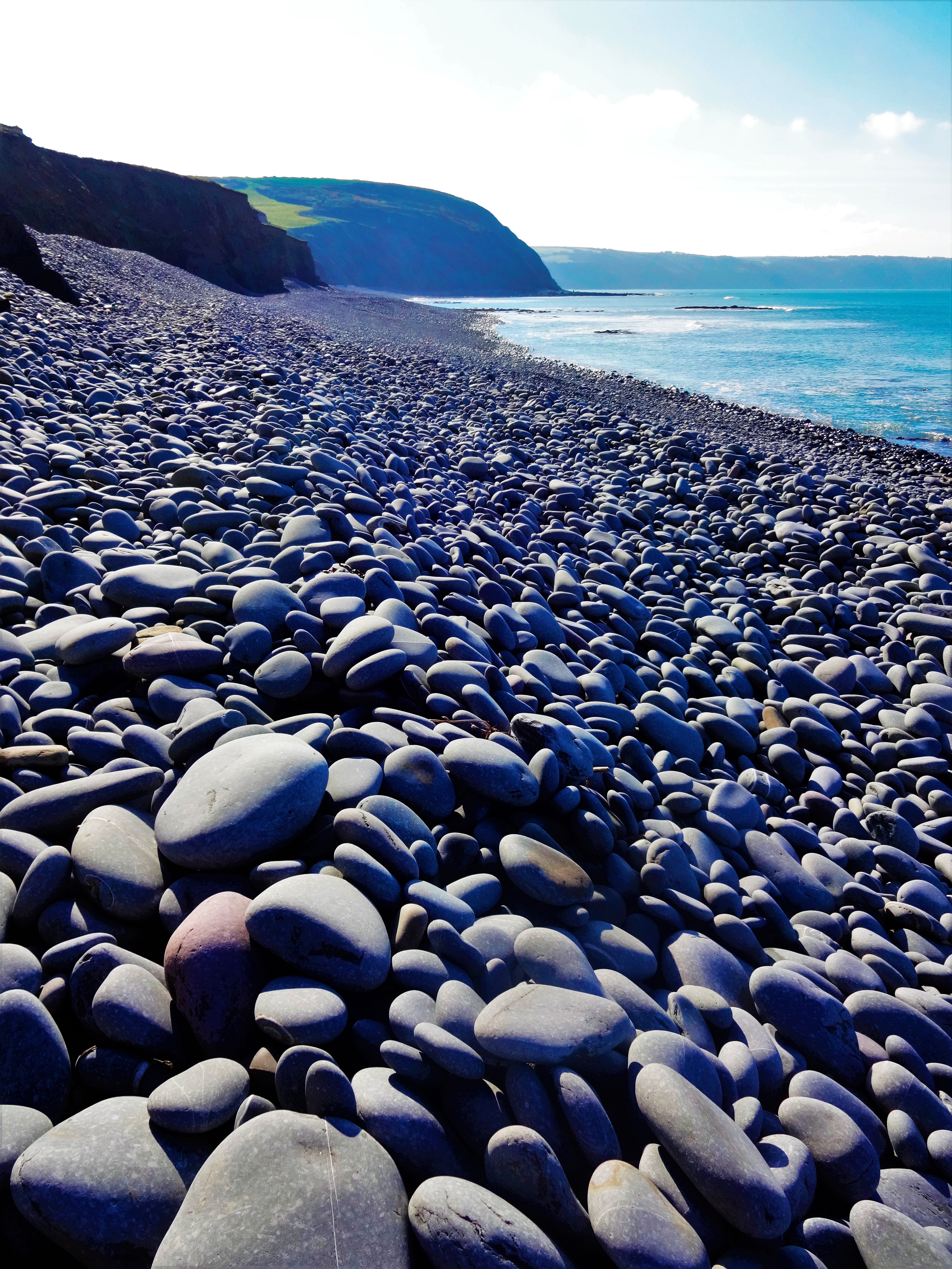 A trip out to Abbotsham to visit Greencliff and restock up on some Bideford Black pigment. What a marvellous day it turned out to be as the weather was forecast to be rather grey. It was an easy walk down to the Lime Kiln and then down onto the pebbly beach. There were a few picnicking couples enjoying the solitude and breath taking views along the North Devon Coast. I found the black seam and removed some of the dark claylike material, someone had been there before and left a hole in the cliff, this I made good with some rocks and clay to prevent any more erosion or collapse. After washing my hands I walked up and down the beach sketching and taking some pictures for further paintings, I then sat and admired the view in the Spring sunshine!