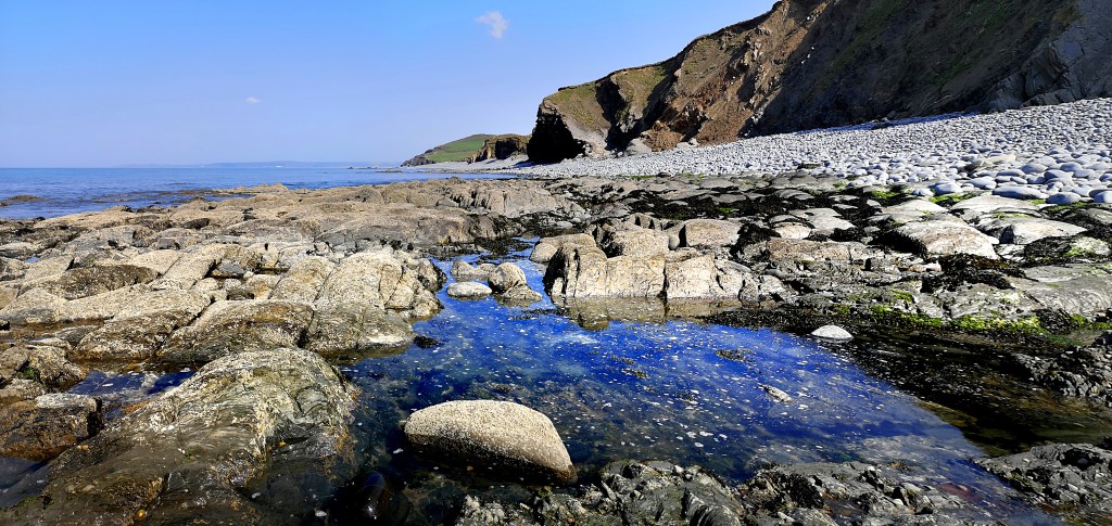 Below is the view looking back towards Abbotsham Cliffs and Westward Ho. In the far distance you can just make out Saunton Sands Hotel on the horizon.