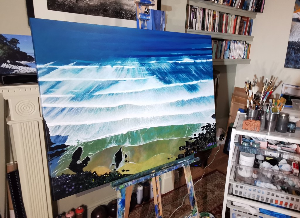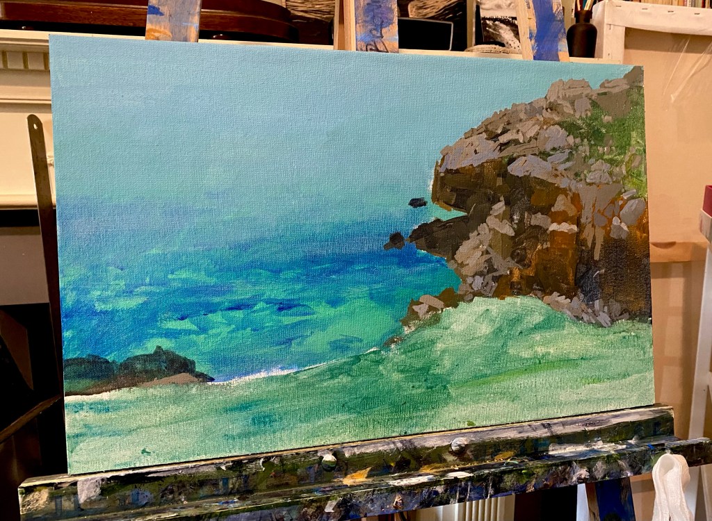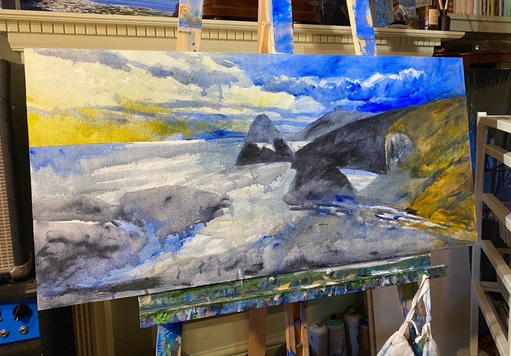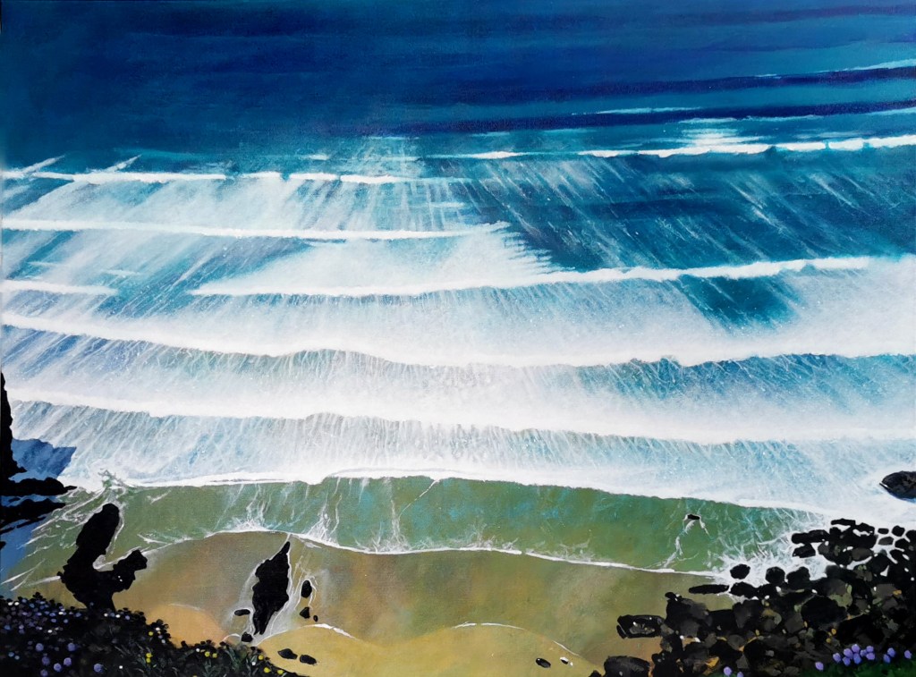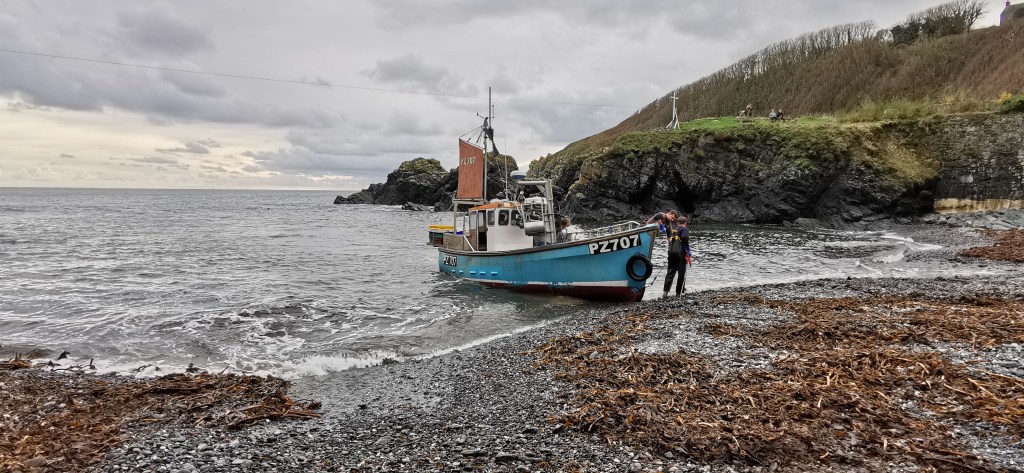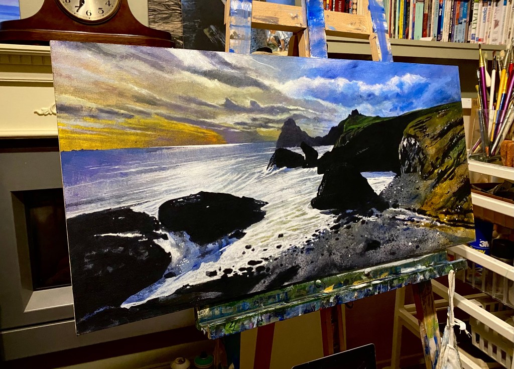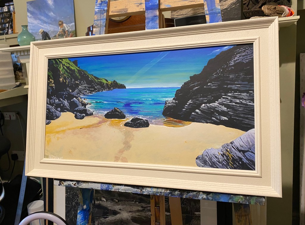 Housel Cove on The Lizard off to a new home. I’ve visited this cove many times and it’s amazing how it changes from low and high tide and through the seasons. At times it’s just a rocky gap which opens to the sea for cold water swimmers and at other times it’s a sand covered secret beach! The sand moves with time and the seasons and erases all of the footprints of the year! Al