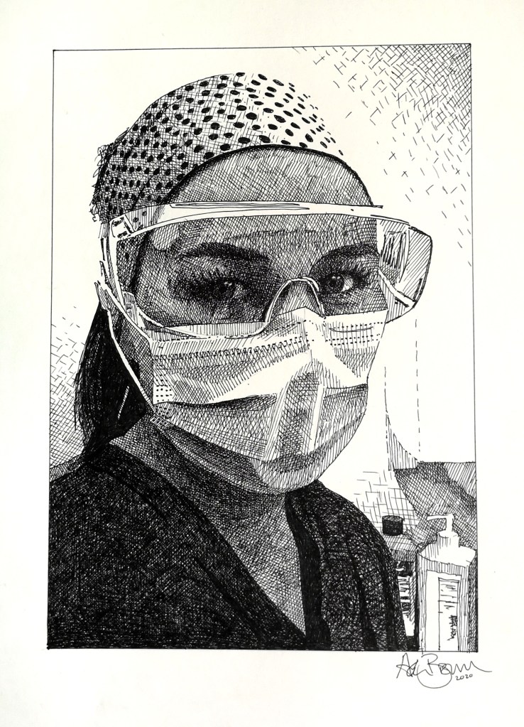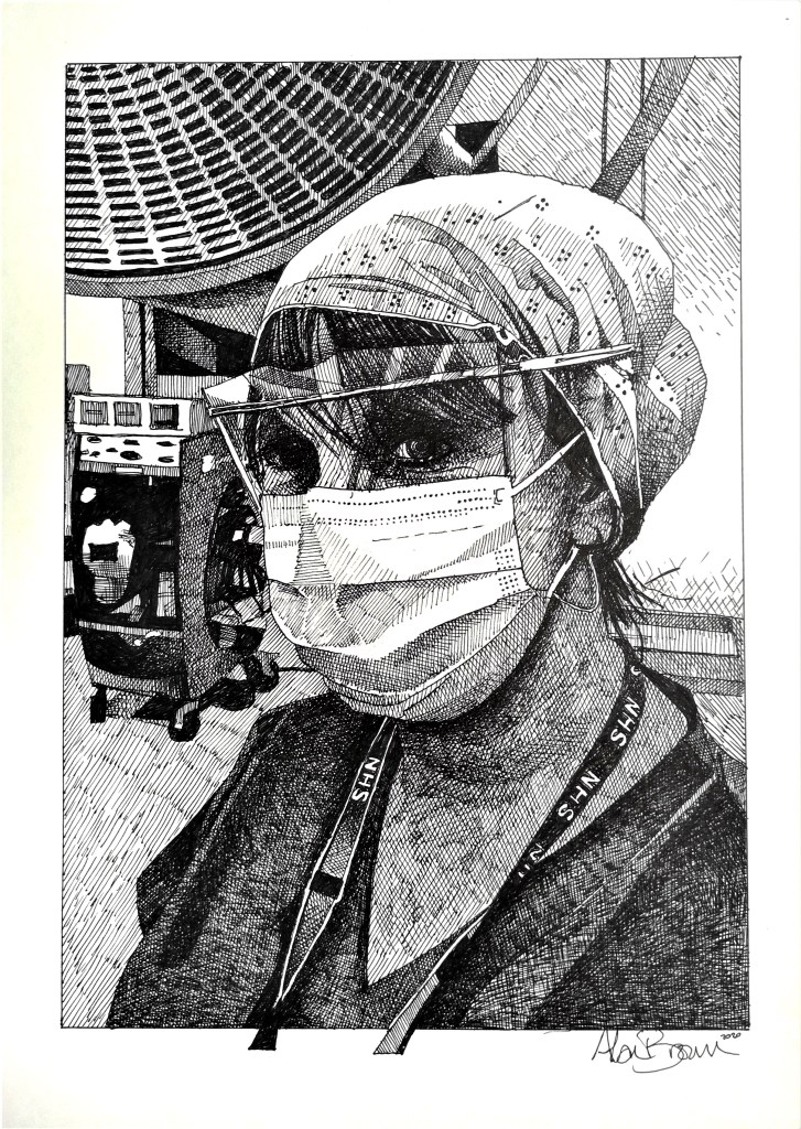 A pen & Ink drawing portrait of an NHS Colleague of mine, a privilege to have worked with him. Al 😎.