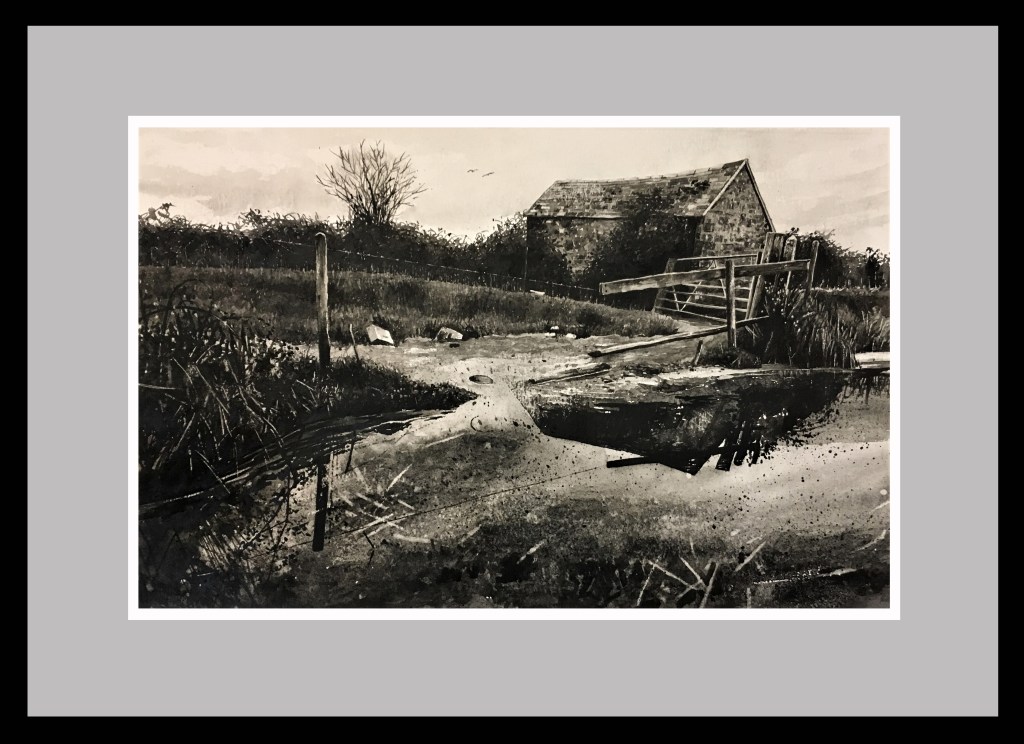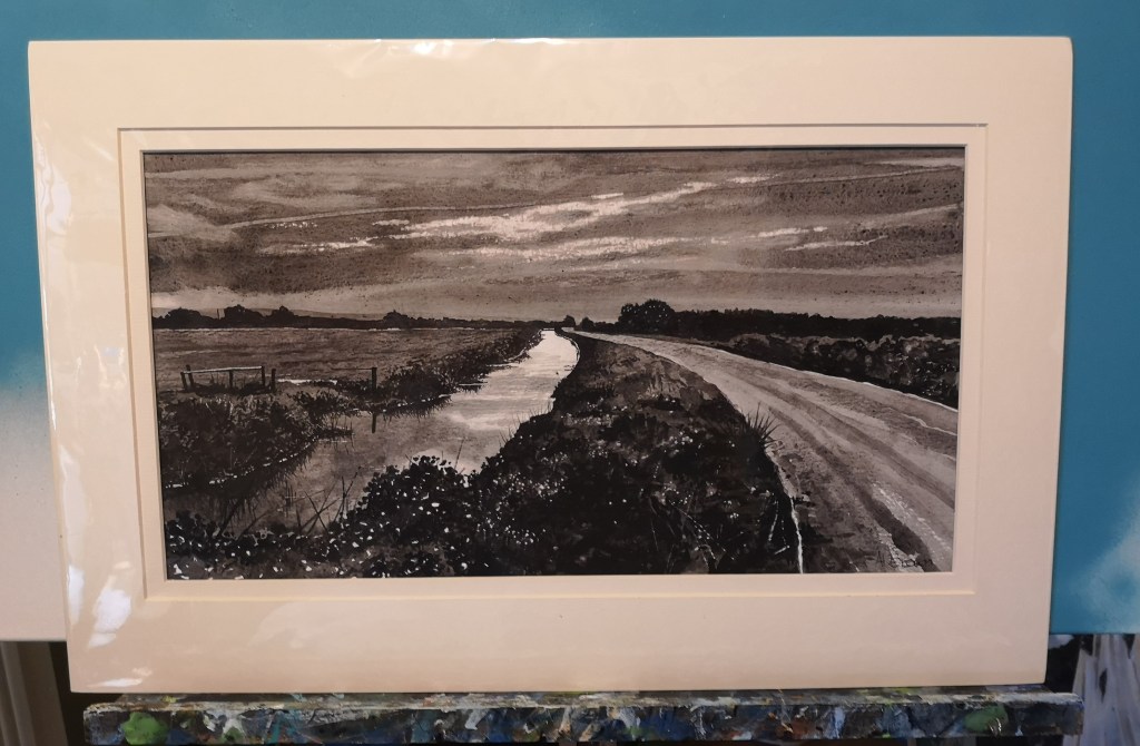 a plein air sketch siting on the bank of a stream in the Braunton Marsh, North Devon