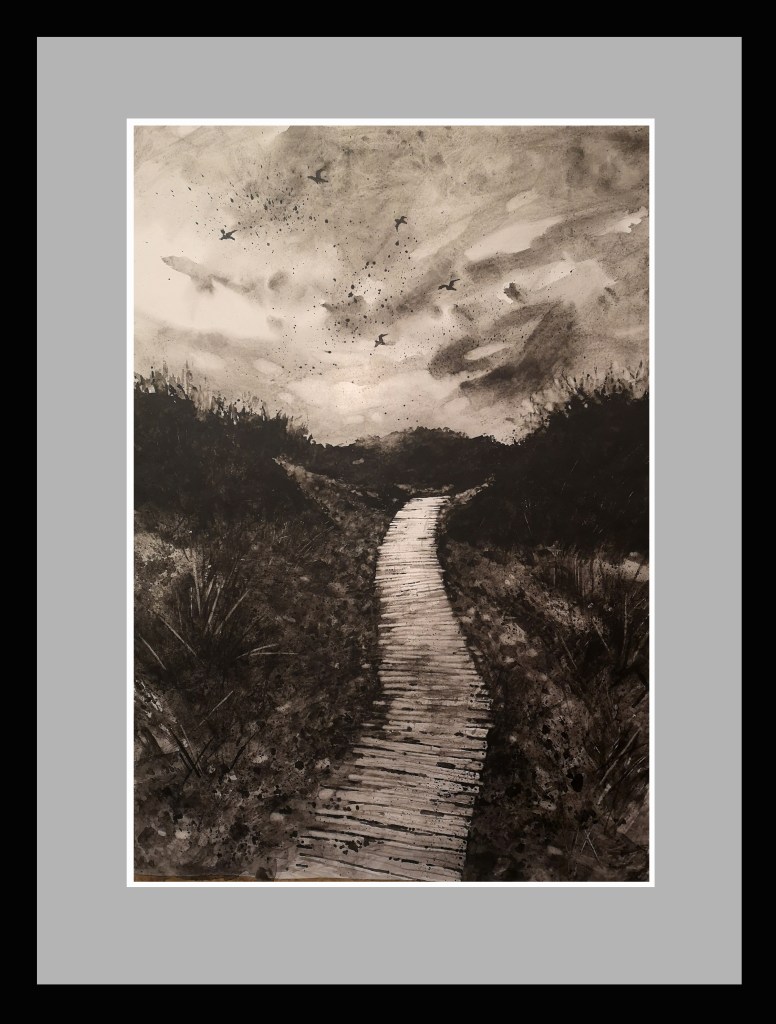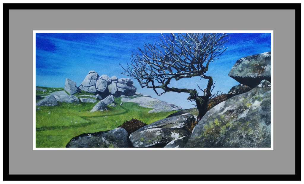 An acrylic sketch of a misty view from the Logan Rock near Treen in Cornwall. I was supposed to spend a few days here earlier this year to sketch and paint, sadly the mist was so thick visibility was impossible. My wife and I returned to the Lizard where we were staying so another painting trip in in order. It’s a hard life! Acrylic on hand made canvas panel 515 X 330mm.