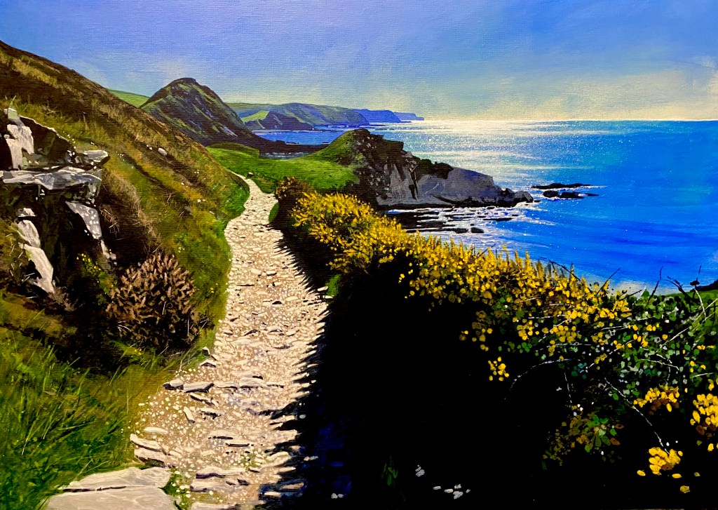 An acrylic on canvas 600 x 420mm of the walk from Hartland Quay on the North Devon Coast.