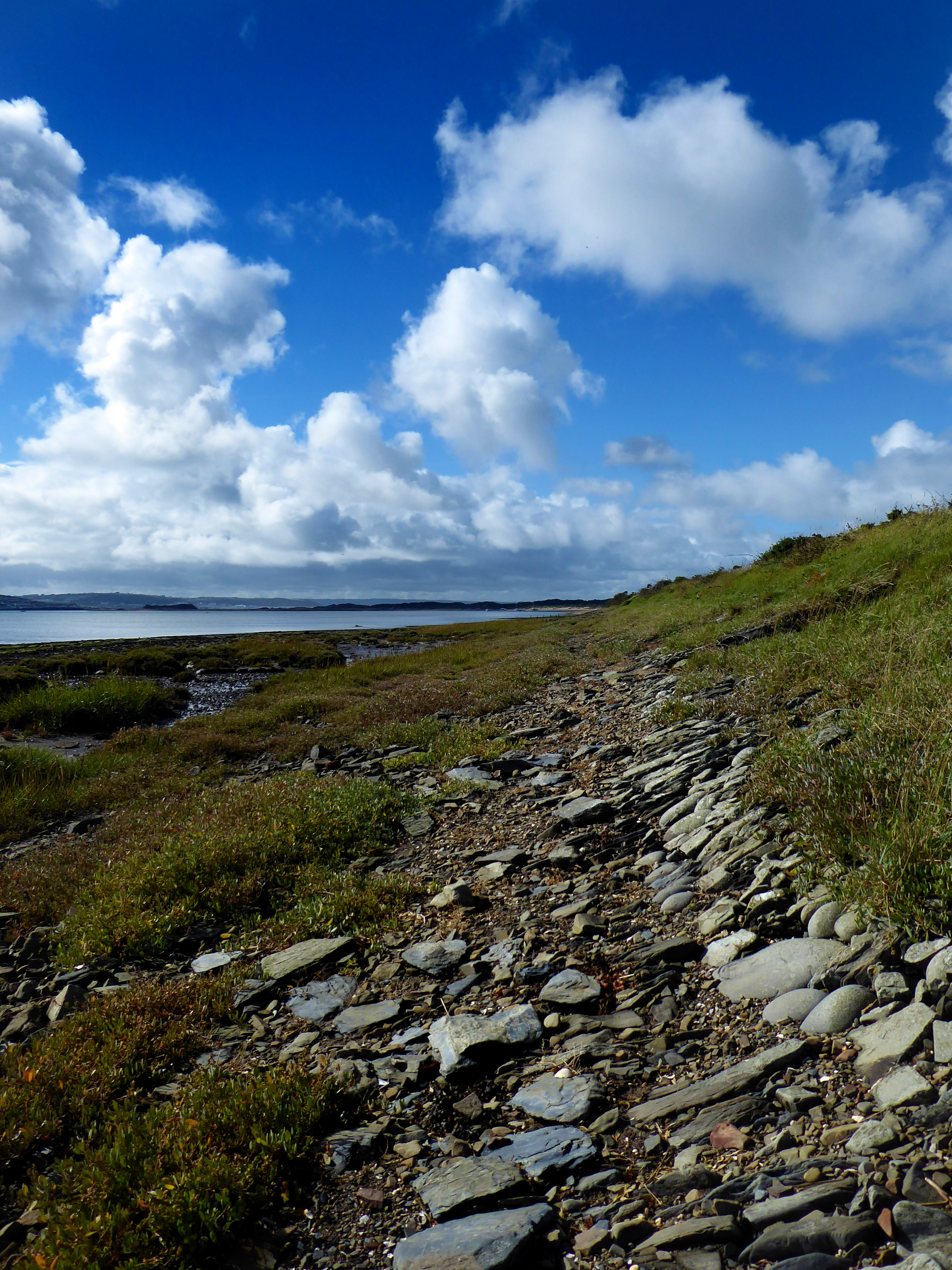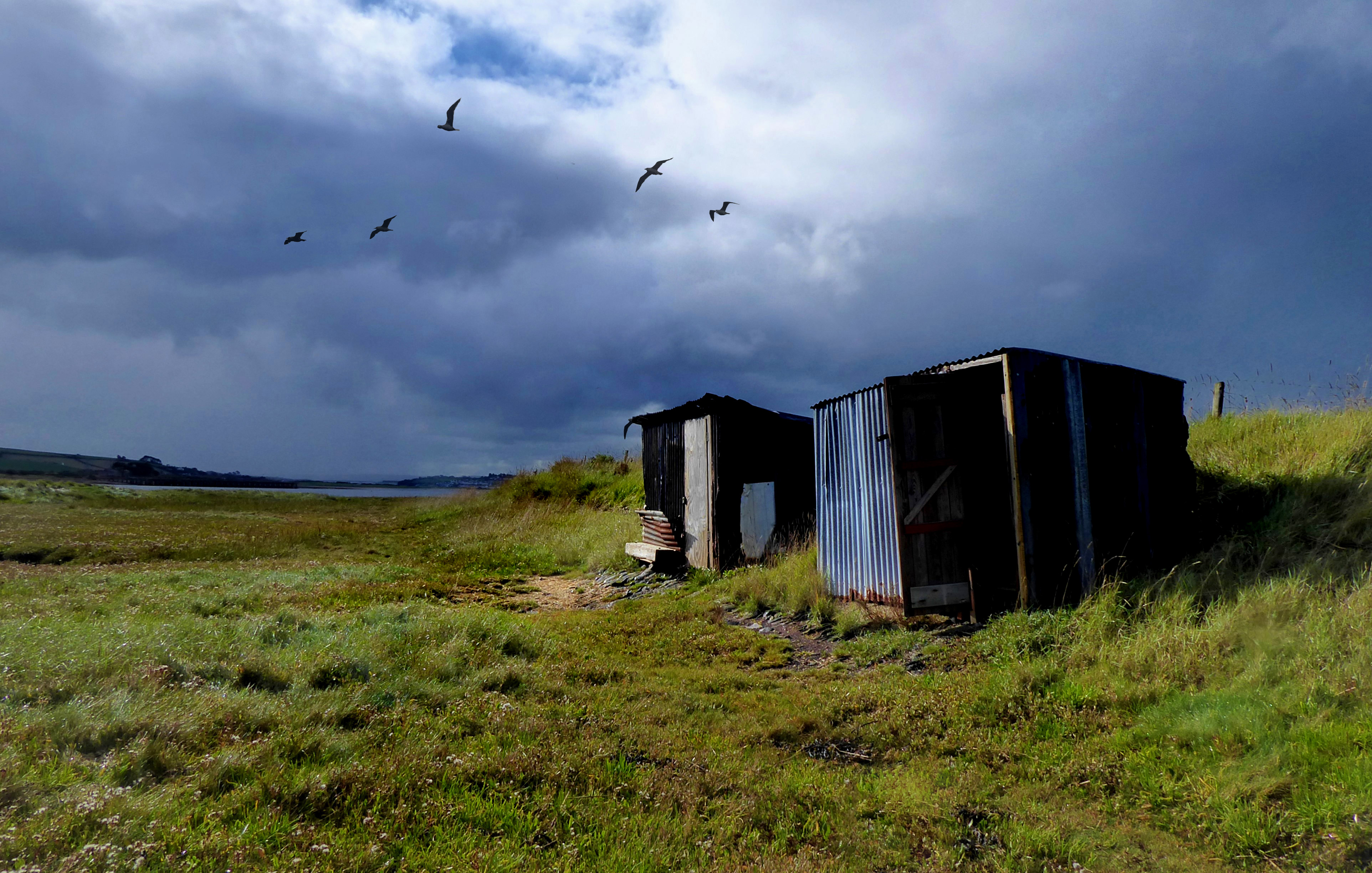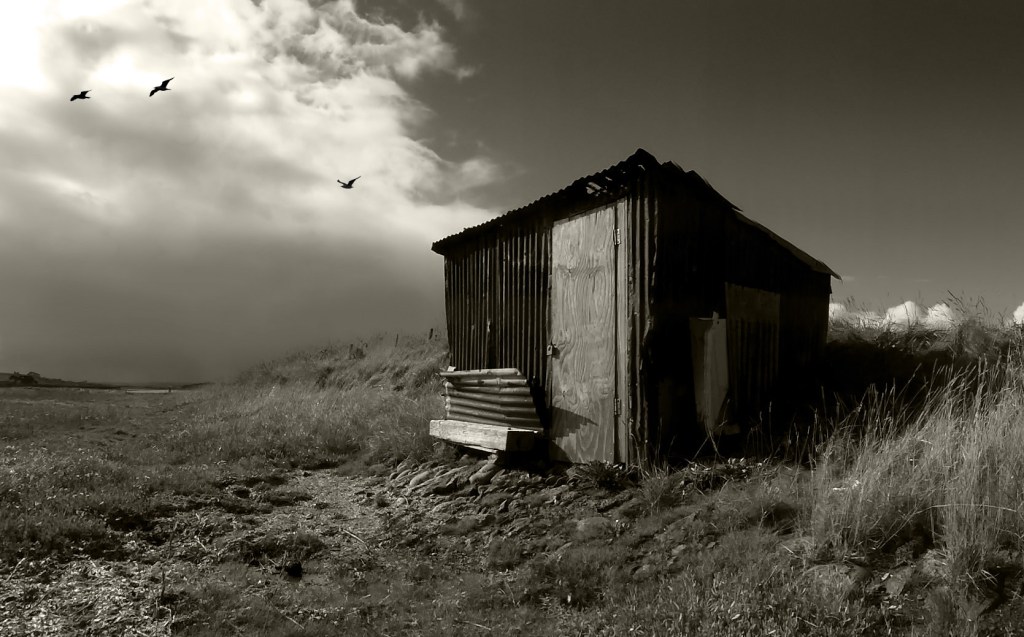 At the end of the beach boardwalk heading towards the Crow Point Carpark there is a a little pond of brackish water on the left. It is here where the brightly coloured damsel and dragon flies hover during the warm spring and summer. With this painting I’m trying to capture that Tulgey Wood sense of dark foreboding. I’ve also made a dark brushstroke across the sky to hint at a starling murmuration. This composition is in Bideford Black on thick cartridge paper, with some scraping and pigment removal.