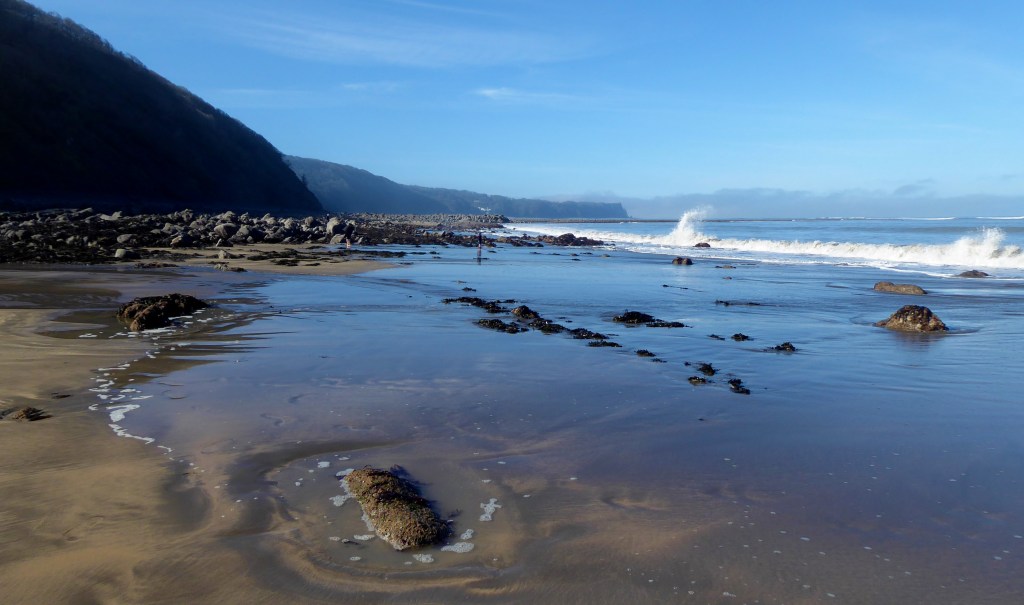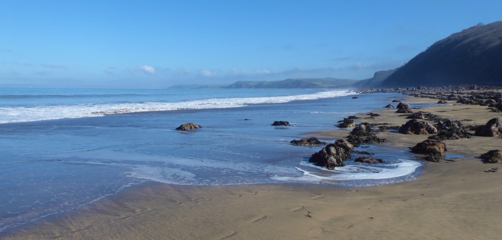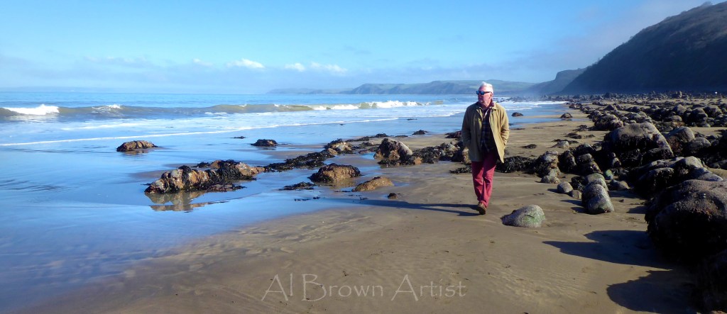 A wonderful visit to Bucks Mills with my wife on a beautiful February morning. The surfers were making the most of the surf break off The Gore, a pebble ridge that leads out to sea. We could see Clovelly in the distance with the winter mist sliding down off the cliffs and after a brief chat with a local lady we discovered a lonely seal surfacing from time to time. I would love to have use of the Artist’s Cabin someday to use as a base to paint pictures here.