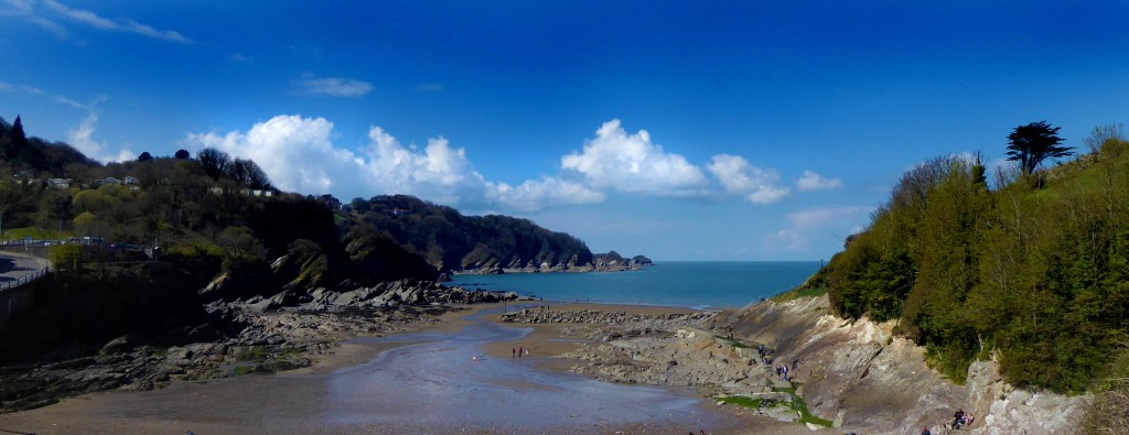 Well another foray out towards Watermouth and Broadsands although Broadsands Beach was closed due to the walk down pathway giving way. Today we remembered our flask of tea so decided to drive along the coast to Combe Martin. I must say I’ve never seen the tide out so far and there were a few women cold water swimming in the harbour. My wife and I decided to stay on our rock and drink our tea!