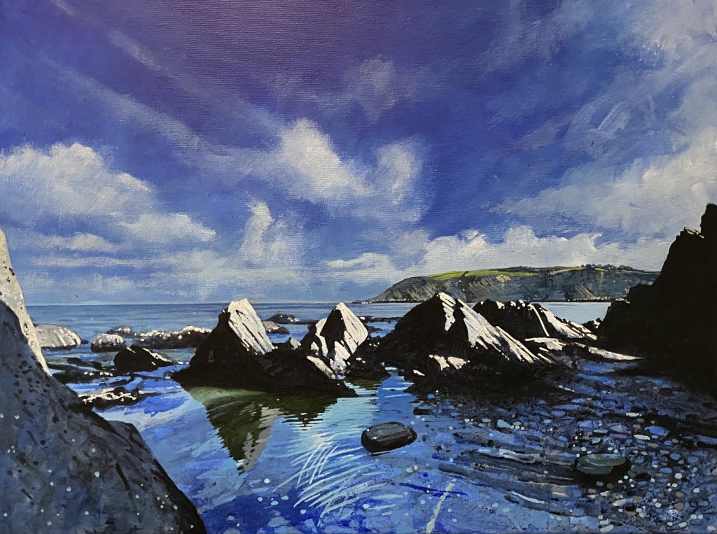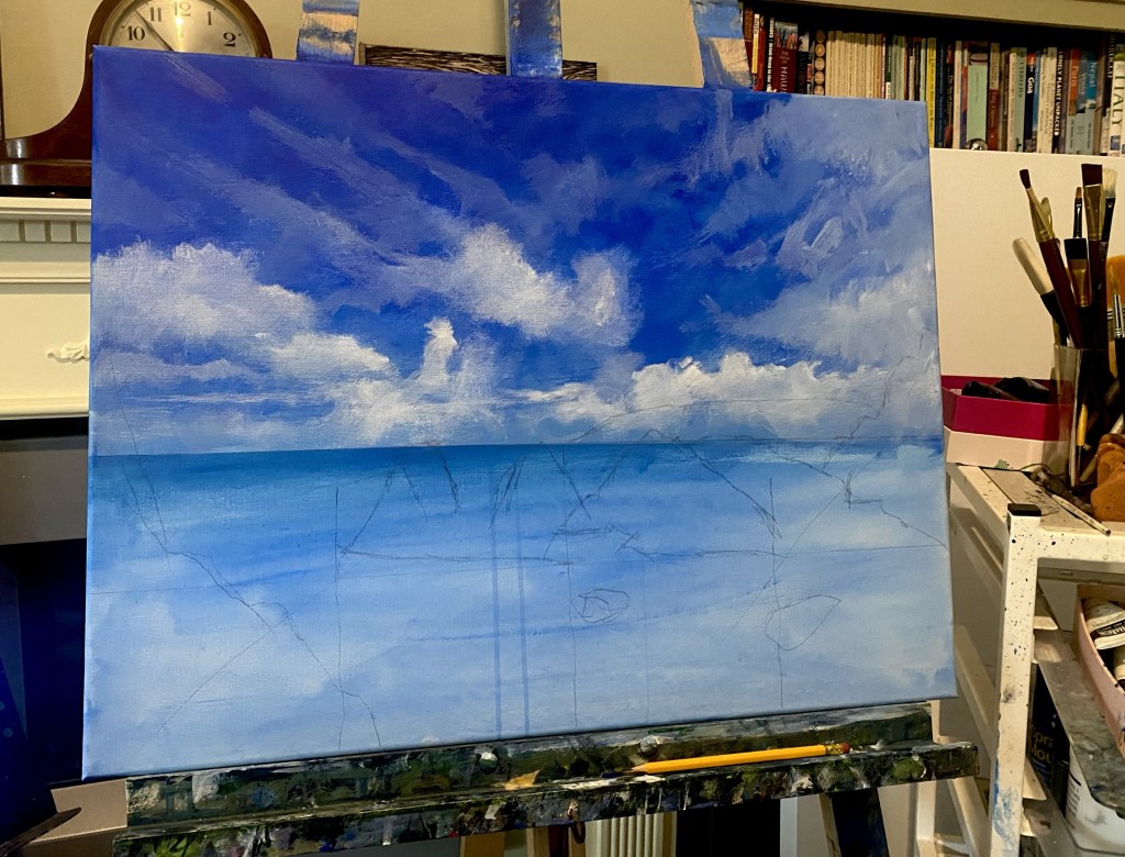 First paint on canvas since October 2023, so I’m not really expecting too much at the moment but am enjoying sitting infront of the easel again. It may well take a little while to get back up to speed so we’ll see where this one goes! Acrylic on 24 x 18″ canvas.