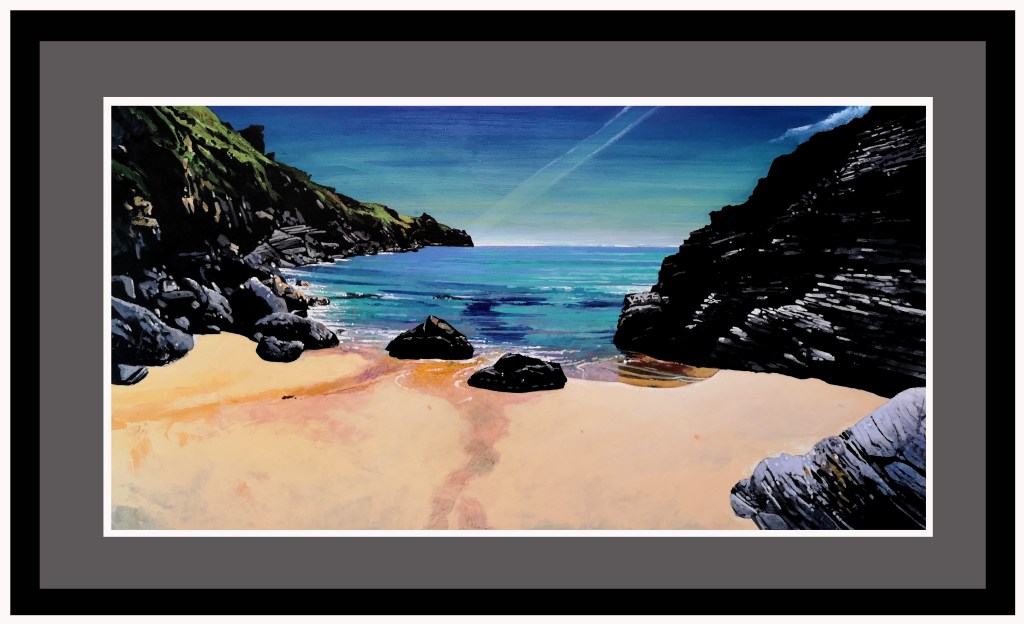 A painting inspired by The Lizard Peninsula. This is of the secret beach at Housel Bay a perfect place to go swimming. In fact I’ll be walking there later this week, don’t forget to say hi!