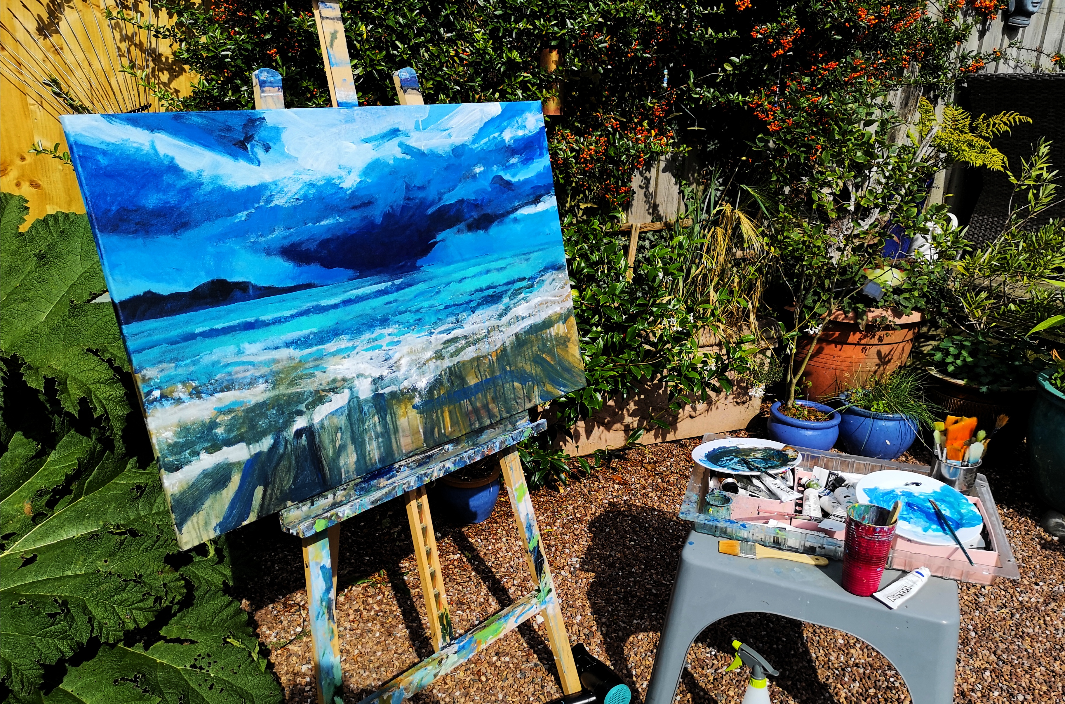 Well this year has been quite an ordeal both on a personal as well as a professional level. As a family we’ve experienced more tragedies than any family should, in my professional life I’ve also experienced great sadness over the year. Due to this blasted Covid situation I’ve not exhibited due to lack of heart, purpose and commitment; finally after applying I managed to be selected for the Burton Gallery’s Christmas Show. Looking back over some of my recent compositions I can see real progress and growth, at least I now believe I’m going in the right direction with regard to painting and artistic confidence. A highlight of the year has been walking the South West Coast Path from Ilfracombe to Combe Martin and on a warm, idyllic summer’s day managed to sketch Broadsands Beach; the finished painting is at the top of this post. Another highlight was walking the Lizard Peninsula in Cornwall where I’ve managed to paint a few images of the wonderful storms and light experienced there, these have now been successfully sold. I’ve a few projects already lined up for 2022 including a reunion of the Black Arts with an organised residential course. I’m looking towards a more abstract way of working and perhaps arranging a few solo exhibitions. Let’s hope 2022 is going to be a partial return to the way we used to live and love. Peace for you all in the next year! Al