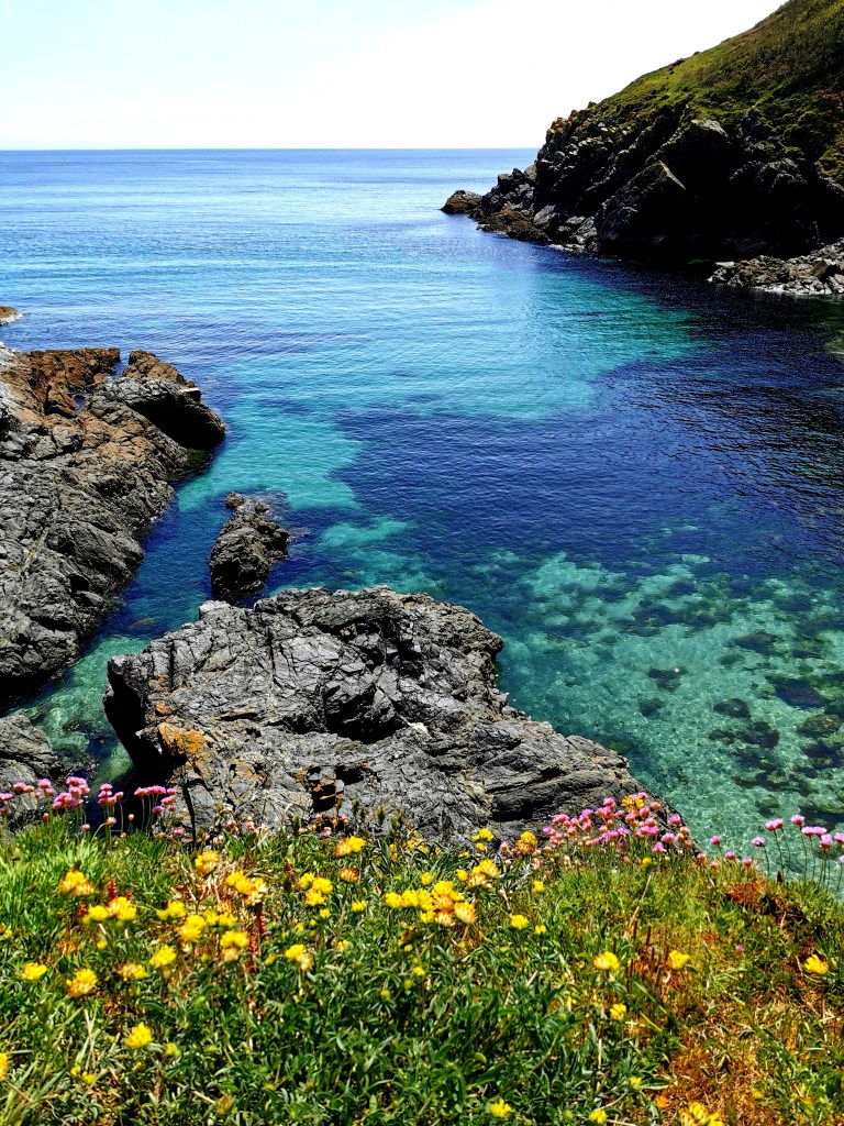 A wonderful day of walking around the amazing Lizard Peninsula. A pleasurable walk from the Lizard carpark down to Housel Cove, then along the South West Coast Path via Lizard Point to Kynance Cove. Arriving at Kynance we were assaulted by a massive hailstorm which lasted over half an hour. Once the blue sky finally arrived you could see the storm on the horizon like an atomic bomb blast! Whilst the storm was overhead most people had left the beach, when the sun returned we had the beach to ourselves a rarity here that’s for sure. Here I always marvel at the coast’s clear turquoise water and rugged outcrops of granite stone. We returned back along the coast path spotting bobbing seals and paddle boarders making the most of the warm sunshine, then to Housel and finally the carpark. More inspiration here for future paintings! Al