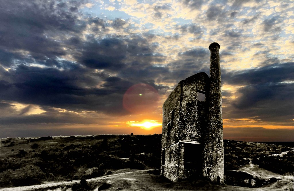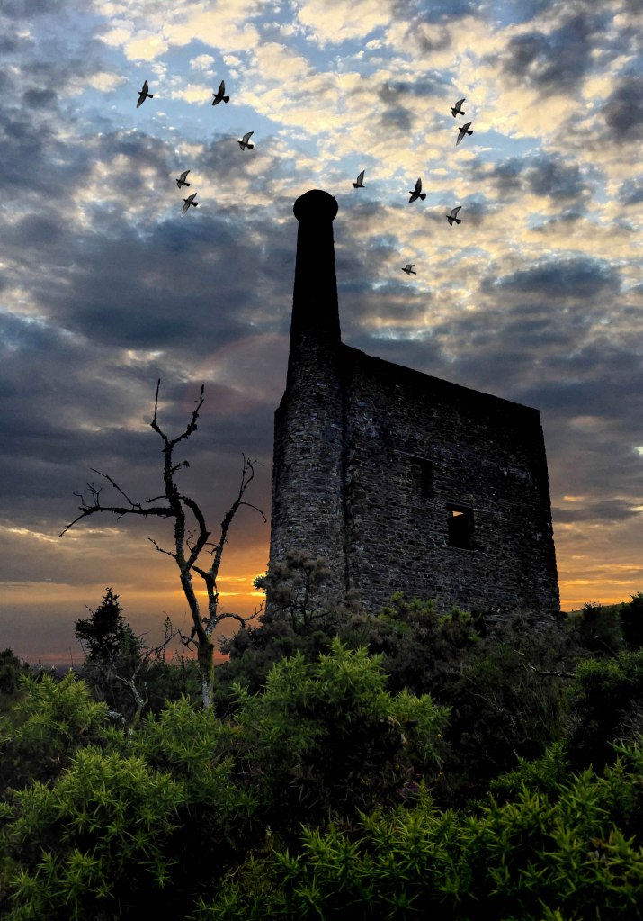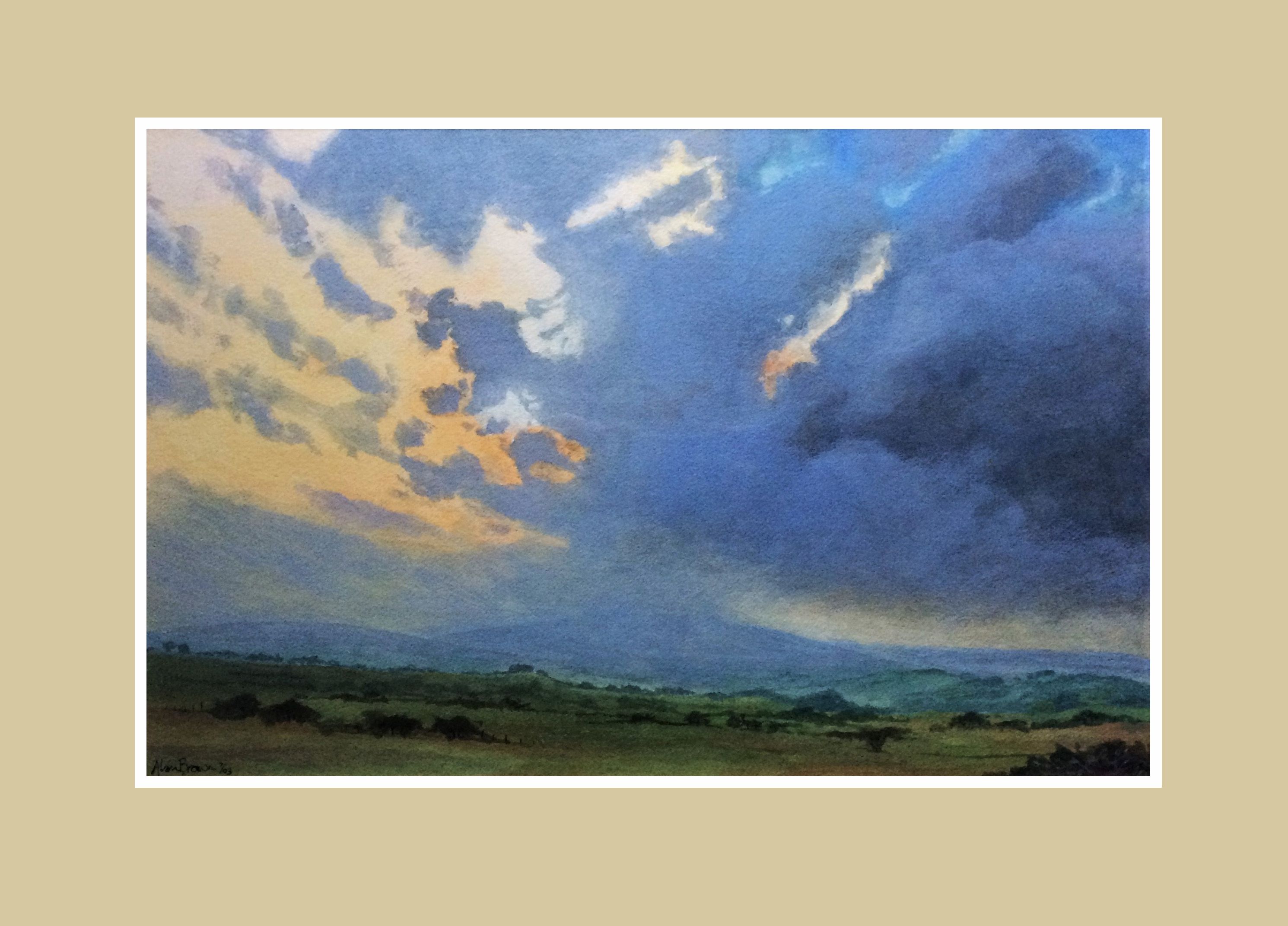 Leaving Tavistock. When you leave Tavy and head back towards North Devon you approach a stretch of road with chimneys of old tin mines in a valley to your right. On a trip back from a weekend in Plymouth I glanced into my car mirror and glimpsed this view. I quickly pulled into a layby and with just a biro sketched this image and made a few colour notes on a scrap of paper. This pure watercolour was painted in July 2003, fifteen years ago, and still remains one of my own favourite picture for which I’m immensely proud. It is still in my own collection. Al